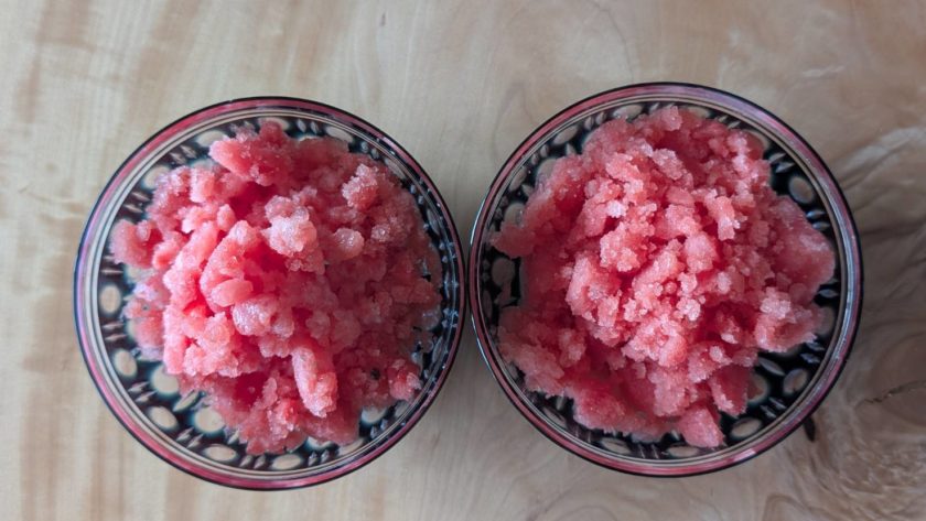 2025年夏 長い夏休みを有難うございました 投稿者: 院長 2025年8月13日2025年8月22日 夏休みの最後にスイカを凍らせてかき氷を作ってみた。 そのままでも美味しいけど、カルピス原液をかけるとバカウマ。