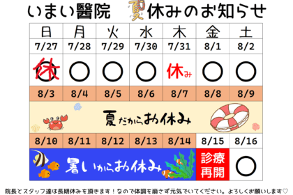 トップページのカレンダー間違ってました。夏休み直前の日曜は休みです。
